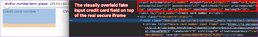 The attack begins with a malicious loader that only executes on pages containing the string checkout. Once activated, it injects a script named jquery.colors.min.js – masquerading as a legitimate JavaScript library – by base64-decoding its source URL: https://cdn.userghawg[.]info/jquery.colors.min.js?ver=3.0.0. This injected skimmer waits for real payment fields—specifically the #cc-number iframe—to load. It then places three visually overlaid fake input fields on top of the real ones to capture card number, expiration date, and CVC.