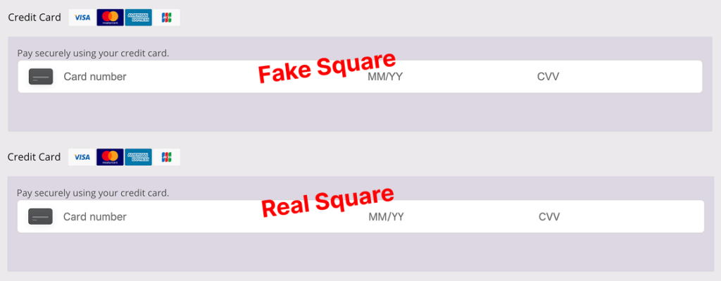 When Square is used, it swaps out the real iframe with a handcrafted copy that captures every keystroke before passing dummy data to the genuine form so the transaction still goes through normally.